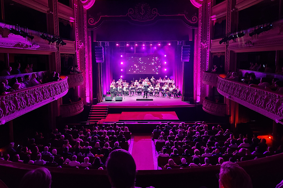 El acto comenzó con un gran trabajo audiovisual en el que mientras se veía en pantalla gigante imágenes de la Defensa de Paysandú, en sala se vivió un juego de luces y sonidos de bombas y cañones que hicieron sentir a las más de 500 personas que se hicieron presentes.
