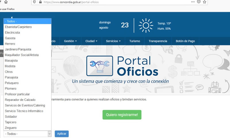 En el mismo ya se puede consultar por una gran cantidad de carpinteros, albañiles, electricistas, gasistas, modistas, profesores particulares, ebanistas, herreros, informáticos, entre otras actividades. De cada uno se ofrece la información de referencia y las formas de contacto (ya sea a través de las redes sociales o por teléfono). El acceso directo es en www.concordia.gob.ar/portal-oficios