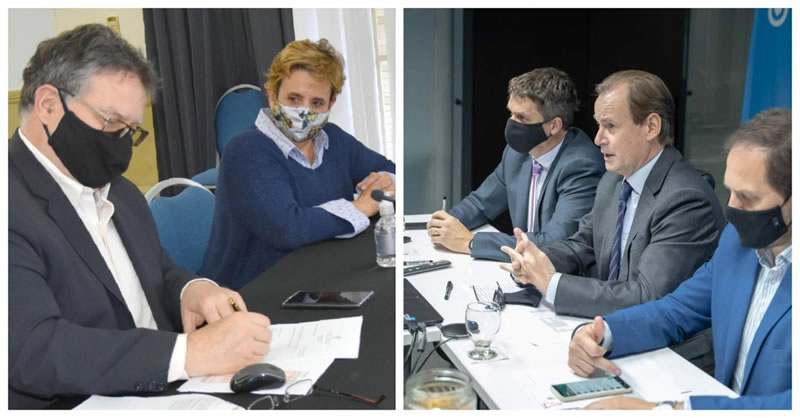 Desde las oficinas del Ente Descentralizado de Obras Sanitarias (ENOHSA) en Buenos Aires, el gobernador Gustavo Bordet, el secretario de Obras Públicas de la Nación Martín Gill y el administrador del ENOHSA Enrique Cresto mantuvieron una reunión, por teleconferencia, con intendentes de distintas ciudades entrerrianas.