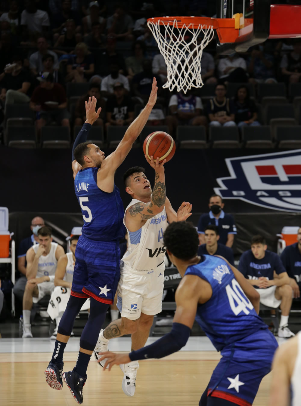 El primer cuarto ya marcó una nítida superioridad estadounidense (33-19), con una interesante eficacia en los lanzamientos de tres puntos (6 de 9), mientras Argentina penaba por su falta de puntería desde posiciones lejanas (1 de 6).
