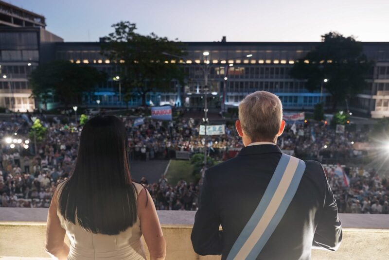 Por esos motivos, afirmó: “Vamos a tener que acompañar el norte que marcó el Presidente, volcar nuestro esfuerzo en ordenar las cuentas provinciales y construir un gobierno eficiente y austero en un contexto provincial que ya de por sí es complejo. Ustedes me confiaron la responsabilidad de ser el gobernador de nuestra provincia, y nunca les voy a mentir: estamos recibiendo una provincia sin plata y endeudada”.