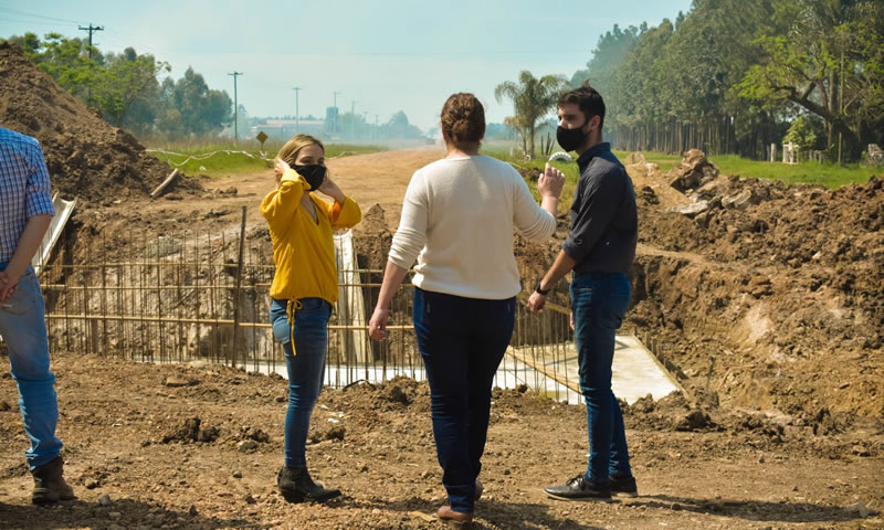 Así lo pudo constatar la vocal de la Comisión Administradora para el Fondo Especial de Salto Grande, Celeste Lorenz, quien junto a Vanina Perini, intendenta de la localidad del departamento Federación, se apersonaron hoy en el lugar donde se construye la alcantarilla sobre avenida 25 de mayo de Villa del Rosario.