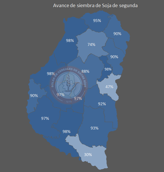 En cuanto a la soja de segunda, desde la asociación resaltan que «a nivel provincial se concretó el 79% (474.000 hectáreas) de la intención de siembra de soja de segunda, que se posiciona en 600.000 hectáreas aproximadamente».