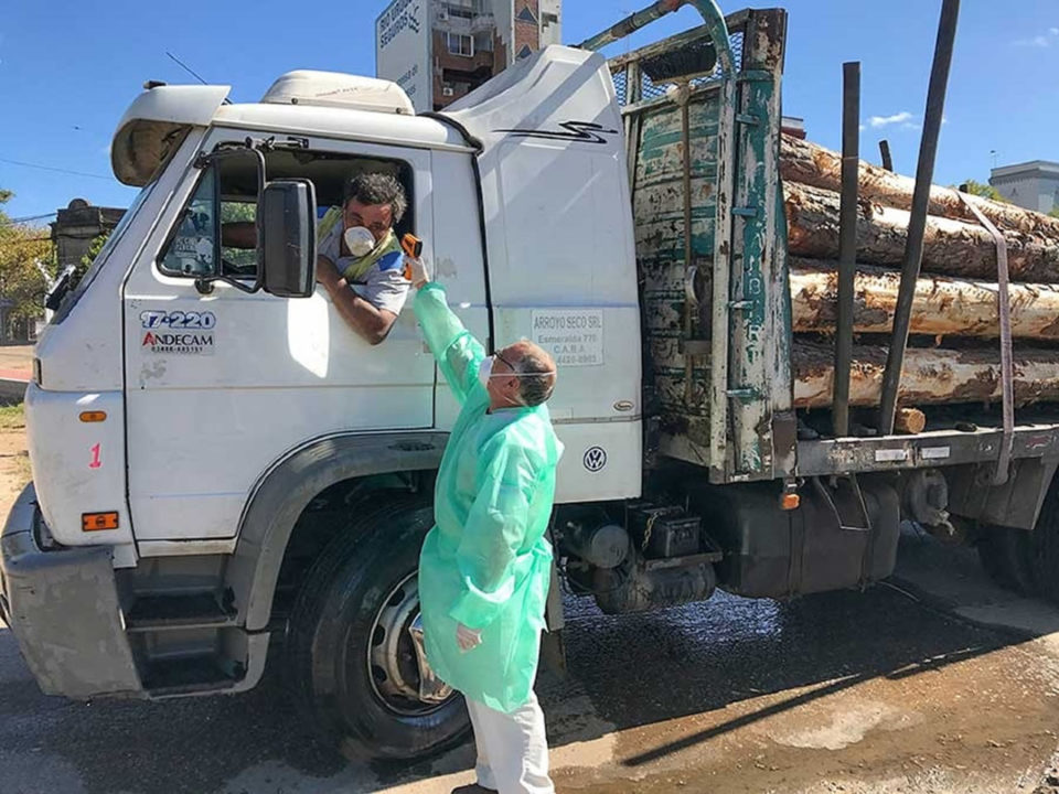 Asimismo, personal de salud realiza controles de temperatura a todas las personas que ingresan al puerto para las distintas tareas, incluidos los camioneros.