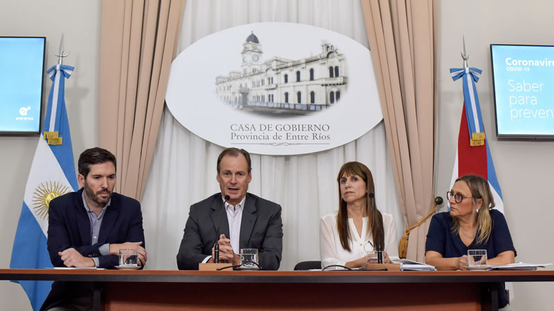 Acompañado por las ministras de Salud, Sonia Velázquez, de Desarrollo Social, Marisa Paira, y el presidente del Consejo General de Educación, Martín Müller, el mandatario entrerriano recordó que desde el gobierno de Entre Ríos se está “trabajando articuladamente con las demás provincias y el gobierno nacional”, “tomando medidas que son concordantes” en el marco de “un sistema integral de salud”.
