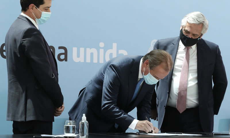Junto a sus pares de las demás provincias, el gobernador Gustavo Bordet suscribió este viernes el Consenso Fiscal 2020 con el presidente Alberto Fernández. “Significa tener previsibilidad en materia de ingresos para el 2021 después de un año realmente complicado por la pandemia”, explicó.