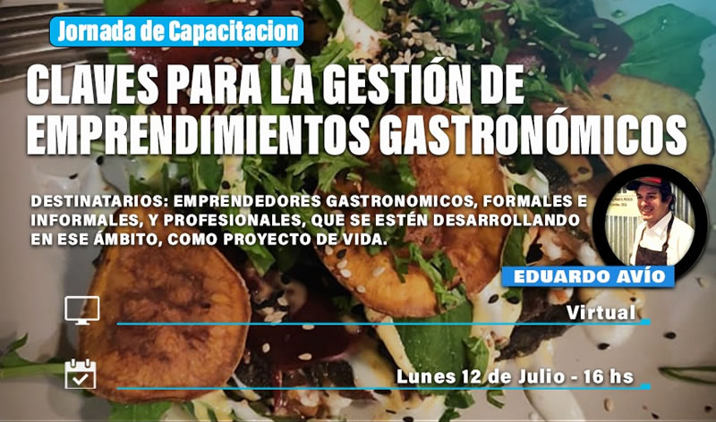 En el marco de un ciclo de capacitaciones que se vienen desarrollando desde el Área de Desarrollo de CAFESG, a cargo de Eduardo Asueta, la institución brindará una capacitación a emprendedores gastronómicos de Concordia y la región, denominada “Claves para la gestión de proyectos gastronómicos”. La misma se llevará a cabo el próximo lunes 12 de julio a las 16.00 hs.