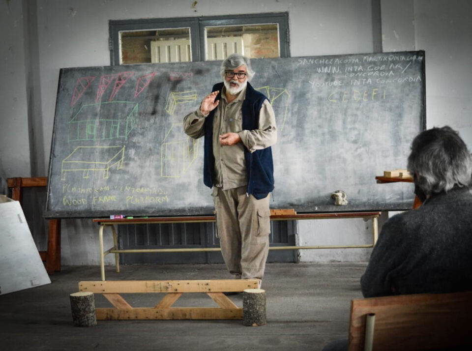 En una actividad promovida por CAFESG e INTA Concordia, con la colaboración de la Municipalidad de Concordia, se lleva adelante una capacitación sobre construcción en madera dirigida a albañiles y constructores tradicionales.
