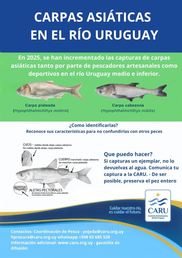 Durante el pasado año 2025, la CARU registró un notable incremento en las capturas de ejemplares exóticos en el tramo medio e inferior del río. En este sentido, los reportes provienen tanto de pescadores artesanales como de aquellos que realizan pesca deportiva en la zona. Las especies identificadas bajo sospecha corresponden específicamente a la carpa plateada y la carpa cabezona.