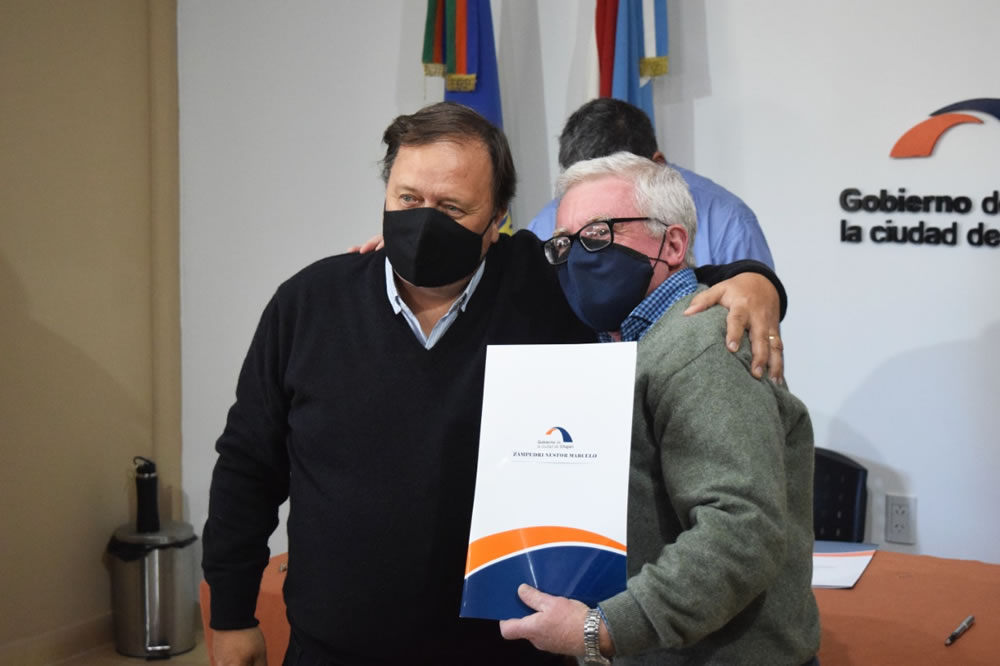 La ceremonia contó con la presencia del Viceintendente Marcelo Borghesan, el Secretario de Modernización y Gestión Gustavo Pizzio, la Directora de Educación Fabiola Fochesatto Brunini, el Senador Provincial Rubén DalMolín y miembros del Concejo Deliberante, acompañando a los beneficiarios que fueron convocados a la entrega.
