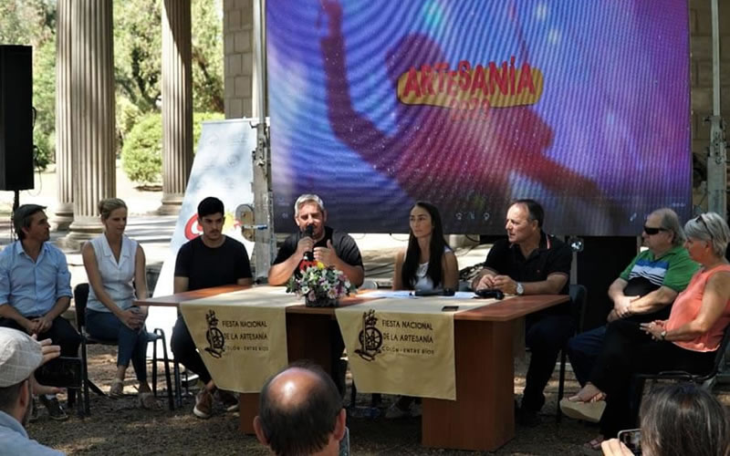 El intendente de Colón José Luis Walser acompañado por el viceintendente Ramiro Favre y el equipo organizador de la Fiesta Nacional de la Artesanía, realizó el lanzamiento oficial de la 38va edición del evento más importante de la Ciudad.
