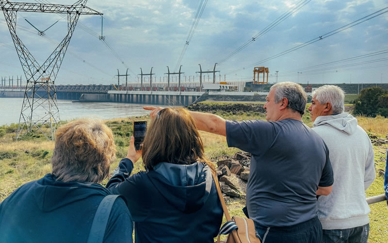 La visita al Complejo Hidroeléctrico incluye un recorrido guiado en micro, con descenso en la sala de máquinas y mirador del lado argentino, en el que se explica cómo se produce la energía y la importancia de los diferentes sectores que hacen posible su generación.