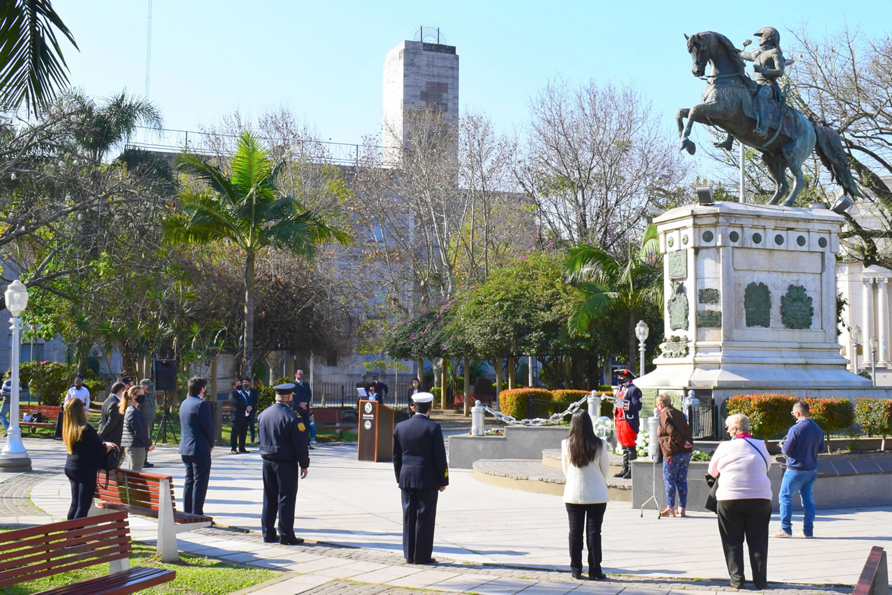Este lunes, en la plaza 25 de Mayo a las 15.00 hs se realizó el acto en conmemoración de un nuevo aniversario del fallecimiento del General Don José de San Martín. Realizado bajo estrictos protocolos en cumplimiento de las medidas de prevención vigentes, el acto fue encabezado por el Presidente del Concejo Deliberante Daniel Cedro, en representación del intendente Alfredo Francolini, la diputada nacional Mayda Cresto, y el jefe del Regimiento de Caballería Tanques «6 Blandengues» Tte. Cnel. Pablo Trinchieri.