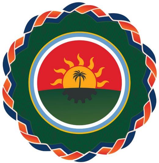 -Una palmera, elemento típico de la región, en un rescate simbólico-histórico del original escudo de Concordia perdido en un incendio antes del primer Centenario;