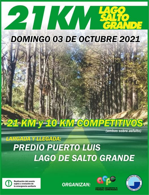 El domingo 3 de octubre se estará realizando la 1º edición de la Media Maratón «Lago Salto Grande», cuya organización está a cargo del Club Salto Grande con la colaboración de la Asociación Concordiense de Pruebas Combinadas.