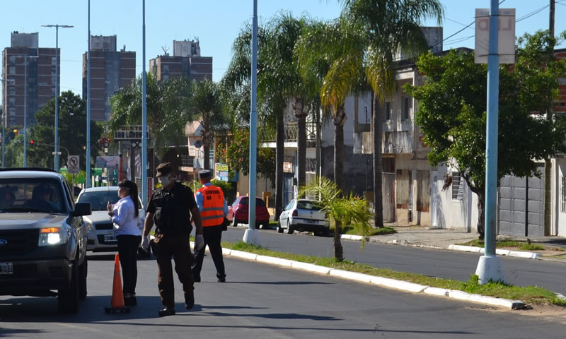 Este lunes por la mañana se dispusieron operativos en las calles de acceso a la zona céntrica, en Avda San Lorenzo y Diamante, en Humberto Primo y Rawson, en Eva Perón y Moulins, y en zona de Plaza España, entre otros puntos. Los controles se realizan en forma aleatoria en distintas calles, y a los conductores y transeúntes se les pide la documentación que avale la necesidad de estar circulando en la vía pública.