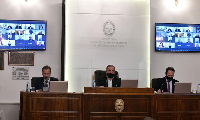 En la sexta sesión ordinaria del 142º período legislativo, el debate fue presidido desde el recinto por el vicepresidente 1º del cuerpo, senador Daniel Olano (Islas del Ibicuy- Frente Justicialista), quien estuvo acompañado por los presidentes de las dos bancadas legislativas, Armando Gay (Concordia-Frente Justicialista) y Francisco Morchio (Gualeguay- Cambiemos); en tanto que el resto de las y los legisladores asistieron a la sesión mediante la plataforma Zoom.