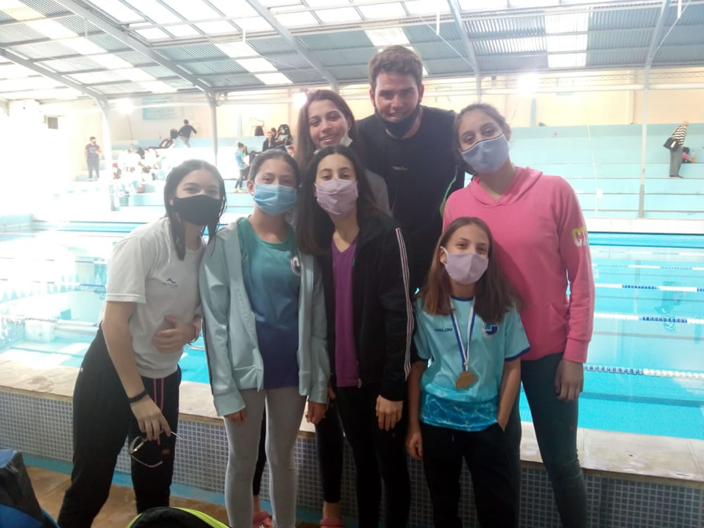 El plantel de natación que compitió en la pileta del Club Regatas Uruguay, estuvo acompañado por el profesor Agustín García.
