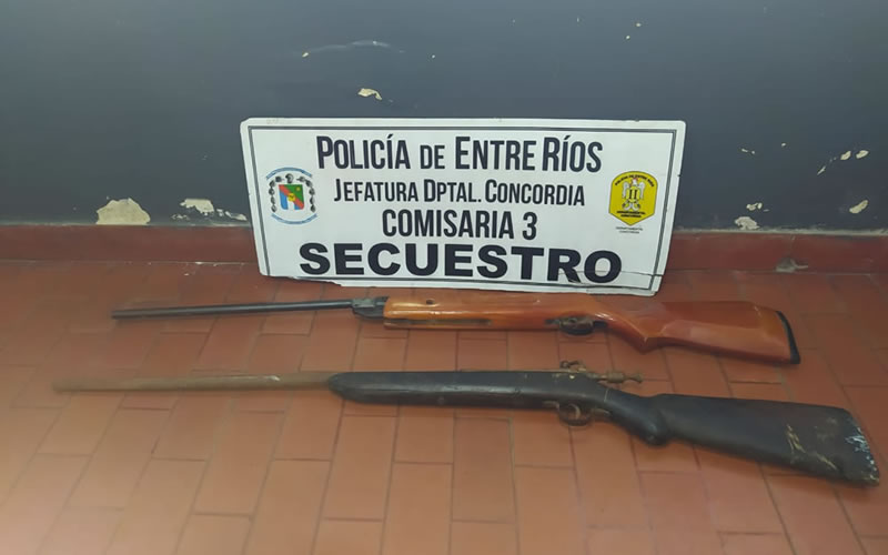 Rápidamente el personal policial concurrió al lugar y al llegar, observaron a un masculino con un arma larga en actitud amenazante, muy alterado y atentando hacia el personal policial, lo que motivó un momento de máxima tensión que terminó con la detención del mismo y el secuestro de dos arma largas; siendo éstas una escopeta Calibre 12, sin marca y numeración visible y un aire comprimido calibre 5.5, sin marca y numeración.