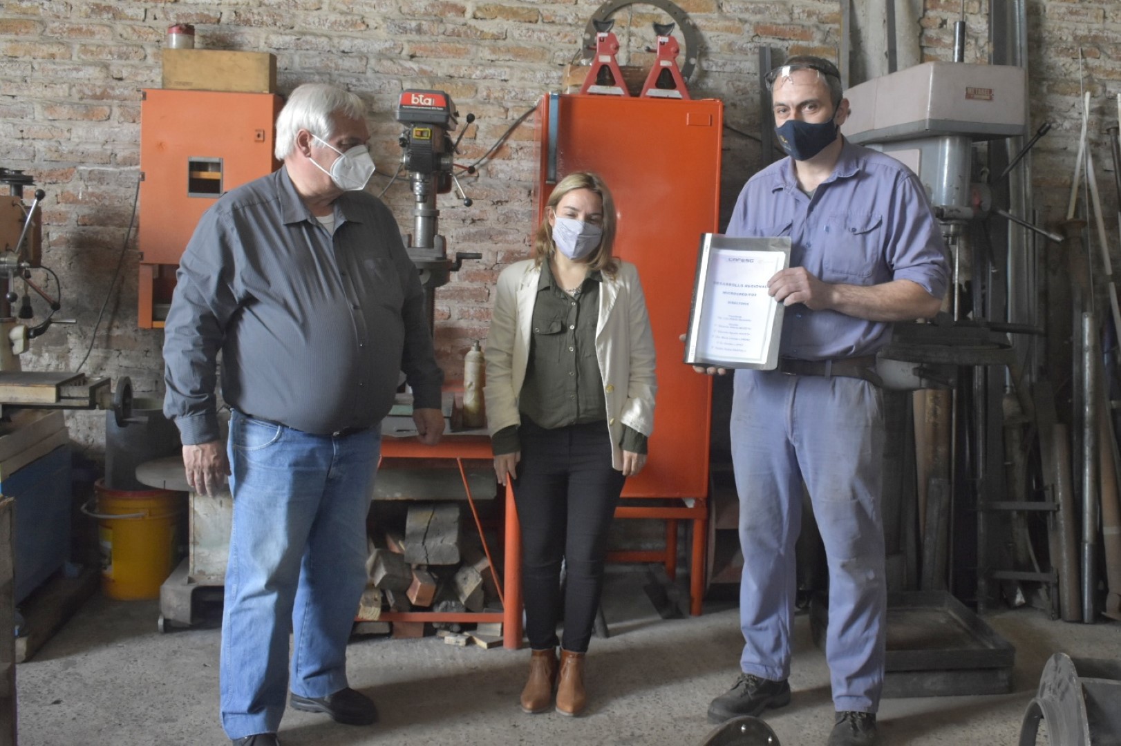 Con motivo de la visita de los funcionarios, Walter expresó que “los microcréditos están muy buenos, porque son la posibilidad que uno por ahí no tiene para poder adquirir las herramientas que necesita, nosotros cuando comenzamos con este emprendimiento en el 2012 pudimos adquirir un torno justamente con un microcrédito de CAFESG, después de la formación que nos dieron los asesores para el armado de las carpetas y hoy nuevamente obtuvimos otro que nos ayudó para comprar un plato, un accesorio de ese mismo torno y así seguimos equipándonos”.