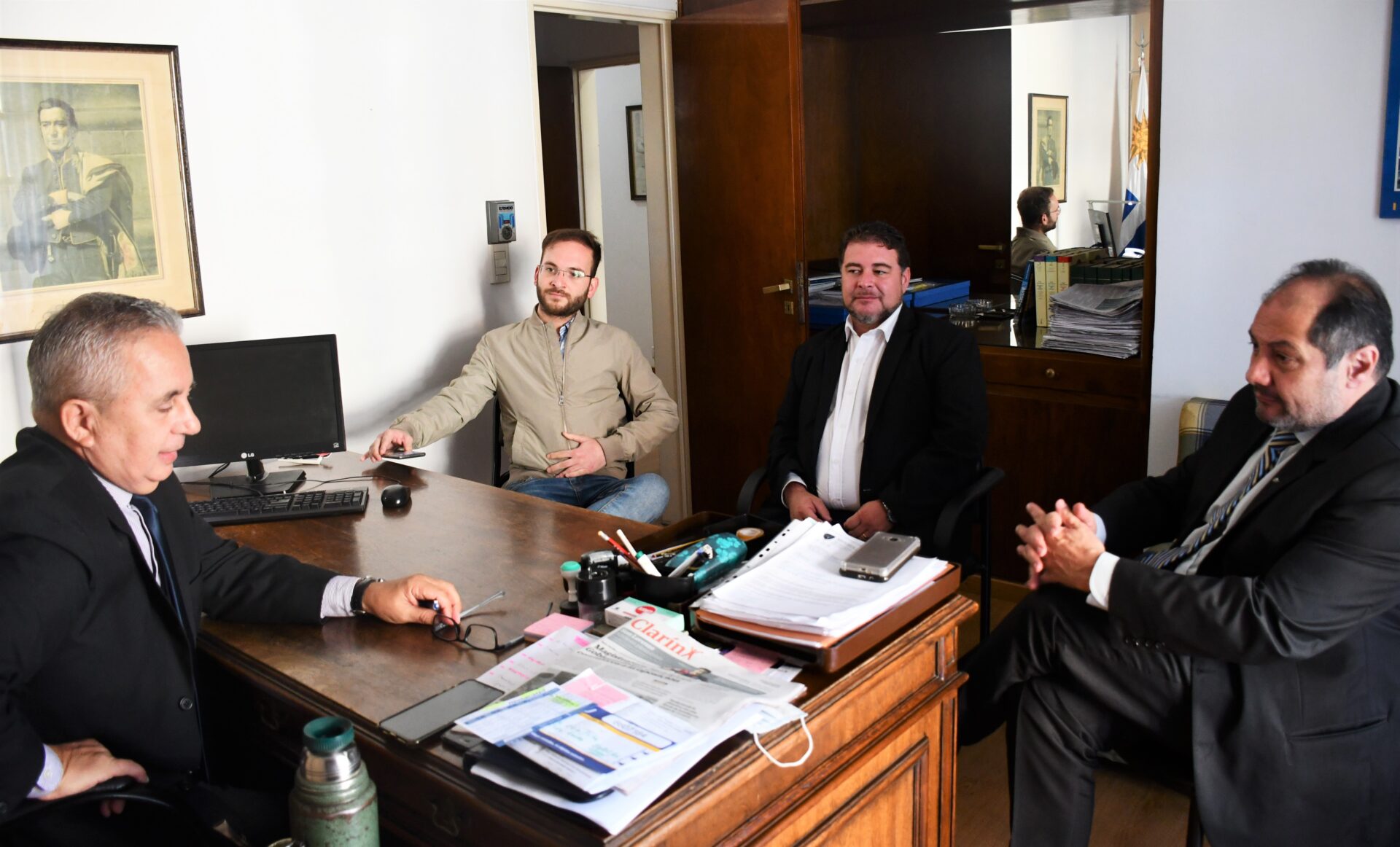 El presidente del Concejo Deliberante Daniel Cedro y los presidentes de los Bloques del Justicialismo Gastón Etchepare y de Juntos por el Cambio Felipe Sastre, mantuvieron una extensa reunión de trabajo con el Cónsul Uruguayo en Concordia, Ignacio Capandeguy.