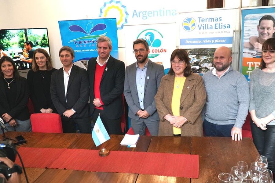 Junto a los intendentes y el cónsul estuvieron presentes Mariano Apeceche, Natalia Viollaz y Romina Quiroz, responsables de termas de Villa Elisa, San José y Colón, el secretario de Turismo y Cultura de Colón Federico Escher y Anabella Lubo y secretaria de turismo, cultura y educación de San José.