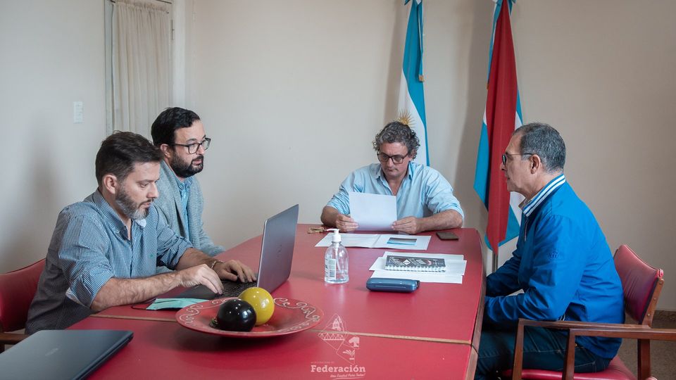 El intendente de la ciudad de Federación Ricardo Bravo, junto al Director de Producción y Ambiente Daniel Benítez, recibieron en horas del mediodía de este lunes en el Salón Rojo del edificio municipal a Ricardo Juárez y Emilio Menvielle del Comité Científico argentino en la CARU, manteniendo una reunión sobre el plan de acción para mejorar la situación ambiental del río Uruguay.