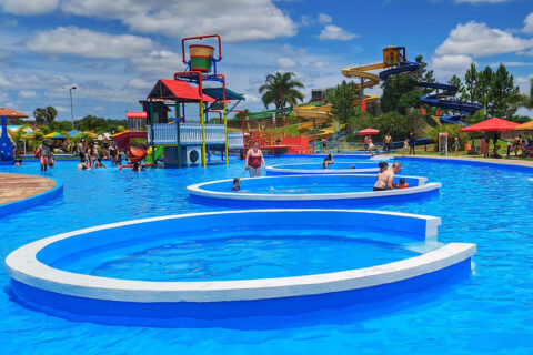 El Paque Acuático se encuentra ubicado en un extenso predio contiguo al complejo de Termas, en Av. Raúl Alfonsín y María Porteiro Ibarra de Flores, y está abierto al público todos los días de 11:00 a 18:00 hs.