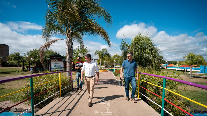 El Presidente Municipal de la ciudad de Federación Ricardo Bravo, en la mañana de este martes, mantuvo un encuentro de trabajo junto al Secretario de Turismo Ezequiel Marozzini y al Encargado de Termas, Javier Zubarán, con quienes recorrió las instalaciones del Parque Termal y Acuático.