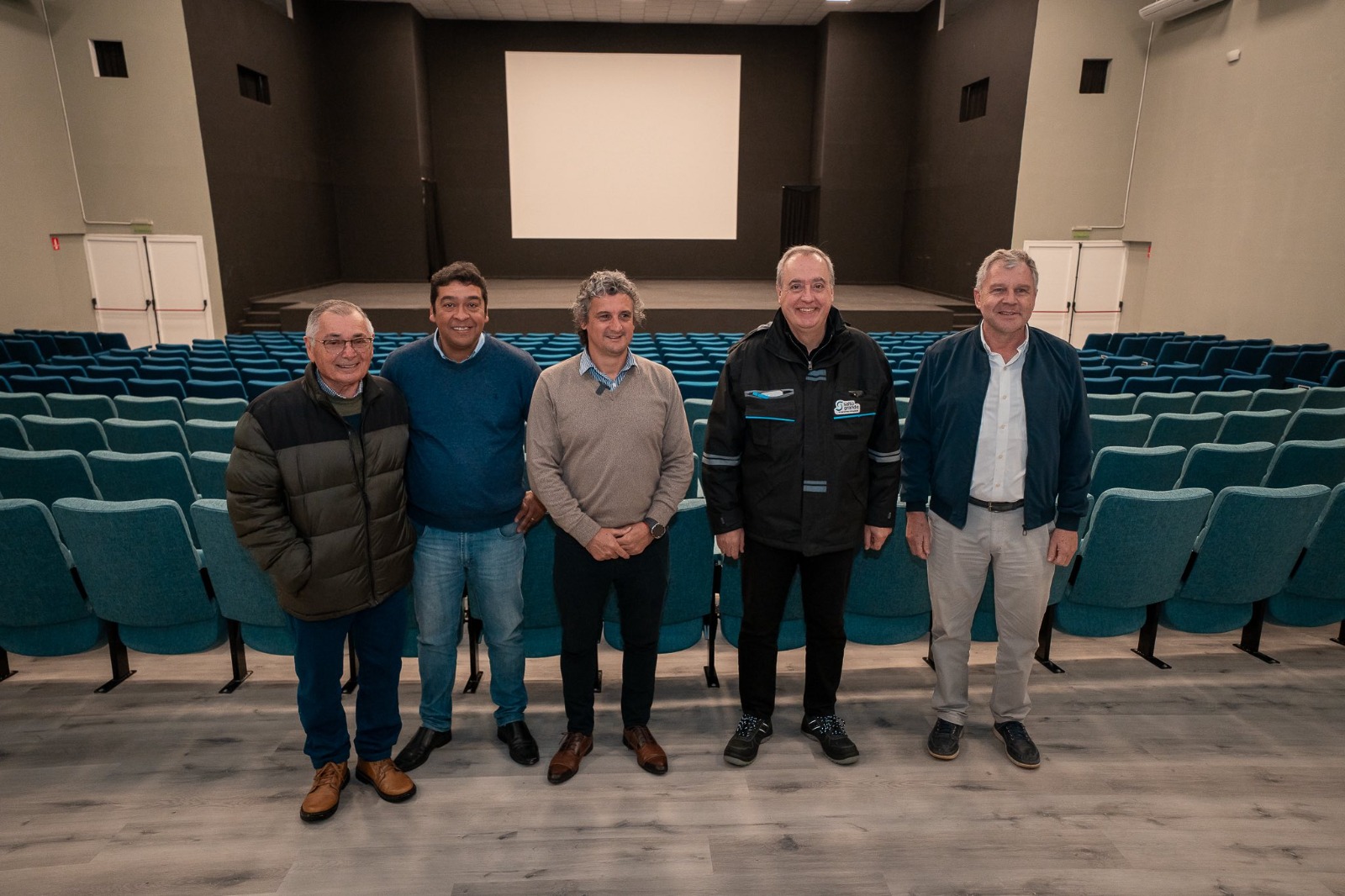 El encuentro comenzó en la oficina del Intendente, donde se hizo un seguimiento de las gestiones realizadas ante la CTM. Luego, el grupo se trasladó al Auditorio de la ciudad, donde se está llevando adelante una nueva etapa de colocación de butacas, una obra gestionada por Bravo con aportes de la CTM y CAFESG, con el objetivo de alcanzar la capacidad máxima del espacio.