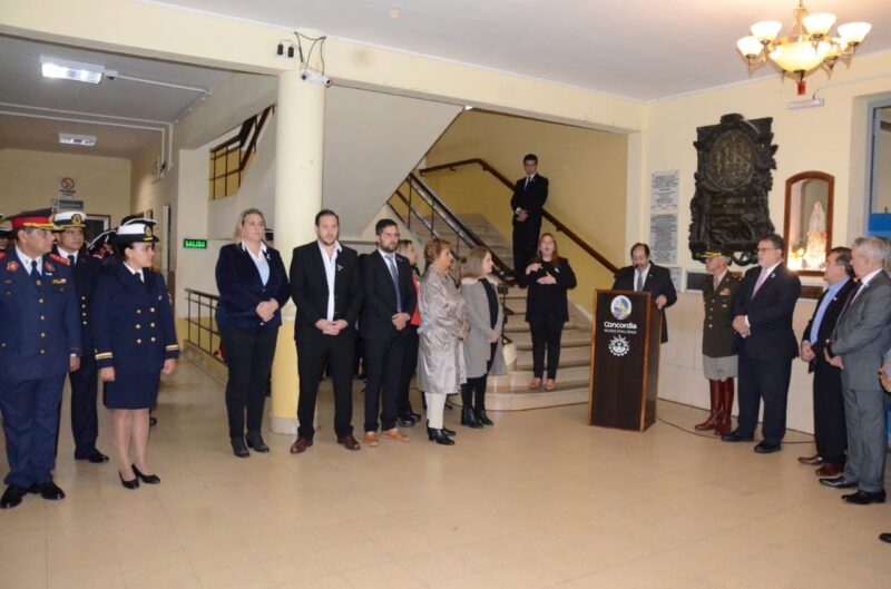 La Jueza Federal Analía Ramponi, el presidente del Colegio de Abogados de Concordia Silvio Rugolotto, autoridades de la Armada Argentina, de la Prefectura Naval, de Gendarmería Nacional, de la Policía de Entre Ríos, de la Policía Federal, de Bomberos Voluntarios, el director Departamental de Escuelas Fabián Vallejos, representantes de asociaciones históricas, de instituciones de la ciudad, funcionarios municipales y provinciales, entre otros.