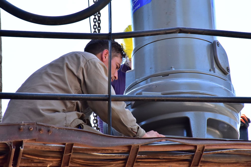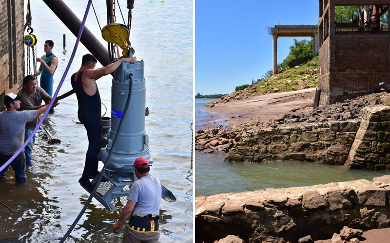 En un escenario de elevadas temperaturas, alto consumo y una pronunciada bajante del río Uruguay, el Ente Descentralizado de Obras Sanitarias (EDOS) coloca bombas de emergencia y toma medidas a fin de evitar cortes de agua.