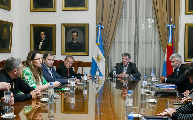 En el Salón de los Gobernadores, el ministro de Economía, Hugo Ballay, junto al secretario de Industria y Comercio Exterior, Fernando Caviglia; y al secretario de Hacienda de la municipalidad de Paraná, Javier Abdala, recibieron al gerente de la firma, Sidinei Ferrarez, y demás directivos.