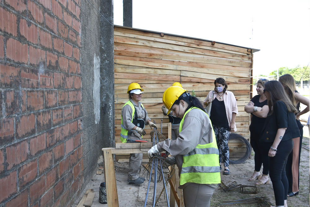 También dialogaron con albañilas que se desempeñan en una cooperativa de construcción, que en esta oportunidad se encontraban trabajando en obras de cordón cuneta en un sector de la ciudad. Mediante la vía del cupo laboral femenino, el 30 por ciento de quienes trabajan en el grupo asociativo son mujeres, las cuales culminaron, junto con otras 50, el curso de albañilería que impulsó el municipio este año.
