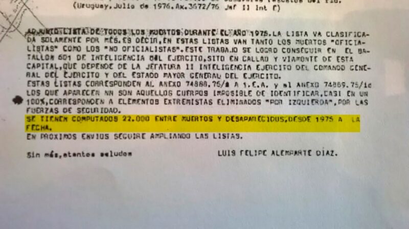 Tal archivo, que contiene 400 informes repartidos en 1.500 páginas, es una verdadera bitácora del Plan Cóndor. Y entre sus alhajas informativas se destaca una hoja fechada el 4 de julio de 1978 que, décadas después, echaría por tierra las falacias negacionistas sobre el número de víctimas del terrorismo de Estado en Argentina. Porque, consigna que “se tienen computados 22.000, entre muertos y desaparecidos, desde 1975 a la fecha”.