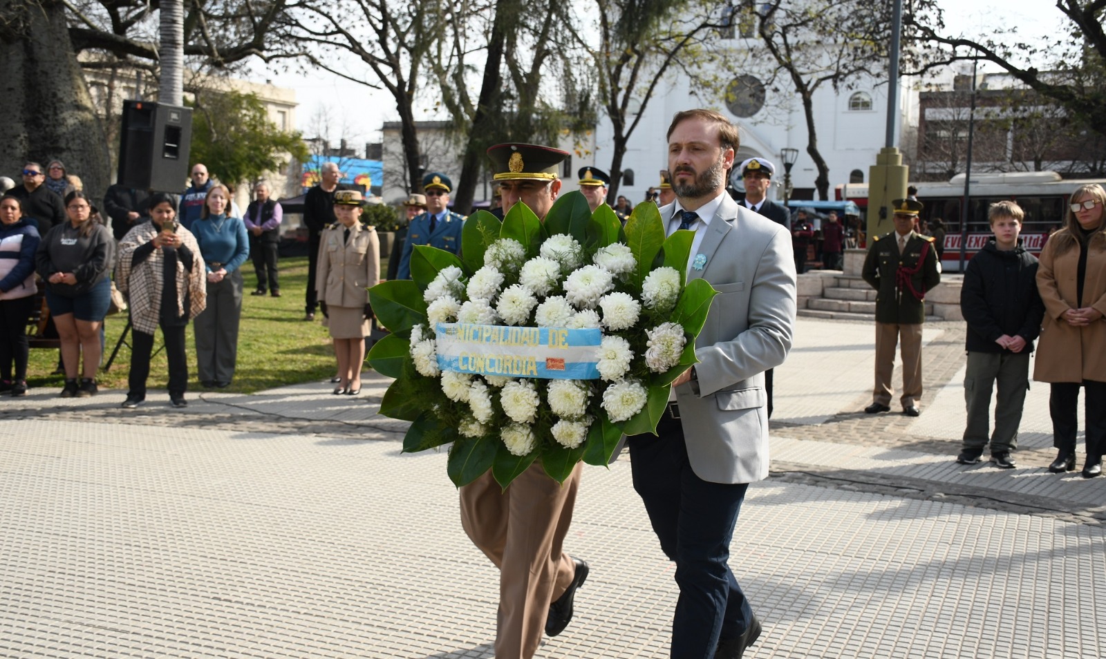 La ciudad de Gualeguaychú rindió homenaje en la plaza que lleva el nombre del Libertador, con la presencia del intendente Mauricio Davico y autoridades locales. El acto incluyó izamiento de bandera, minuto de silencio, ofrendas florales, la interpretación del Himno a San Martín por el tenor Gabriel Hernández y números corales.