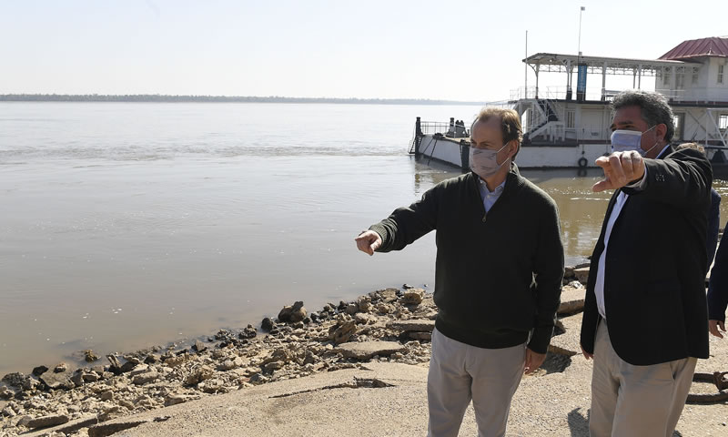 El gobernador Gustavo Bordet entregó aportes en Hernandarias para reacondicionar las barrancas ante los deslizamientos, y dijo que se monitorea la situación de las distintas zonas afectadas por la bajante del río Paraná.