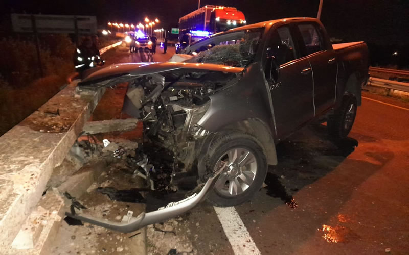 Cerca de las 02.00 hs de la madrugada de este viernes, la policía de Comisaría de Colonia Yeruá tomó conocimiento sobre un accidente de tránsito en el Km-252 de la Autovía G. Artigas. Al llegar al lugar los efectivos pudieron observar una camioneta marca Toyota Hilux la que se encontraba con un fuerte impacto sobre la cabecera del Puente «Arroyo Yuquerí Chico».