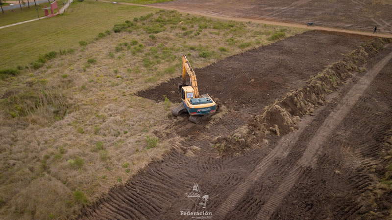 El Intendente de la ciudad de Federación Ricardo Bravo, estuvo recorriendo los trabajos iníciales que se realizan en el predio donde se levantará el polideportivo de la ciudad.