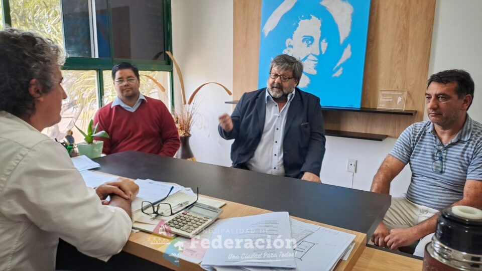 (Argentina).- El Presidente Municipal de la ciudad de Federación Ricardo Bravo, recibió al Defensor Público Multifuero de Federación, Doctor Juan José Giorgio, acompañado por el empleado de la Defensoría Pablo Talarico y el Jefe del Registro Civil Rodrigo Cattaneo.