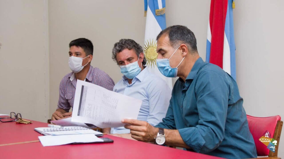 El Intendente de la ciudad de Federación Ricardo Bravo, junto al Director de Producción y Ambiente Daniel Benítez y el responsable de la oficina de Empleo Matías Acevedo, mantuvieron una entrevista vía zoom con la Ministra de Desarrollo Social Marisa Paira y el Secretario de Economía Social Luis Precerutti, para celebrar la entrega del primer aporte, que va a consolidar la primera de las tres etapas proyectadas para el Polo Productivo.