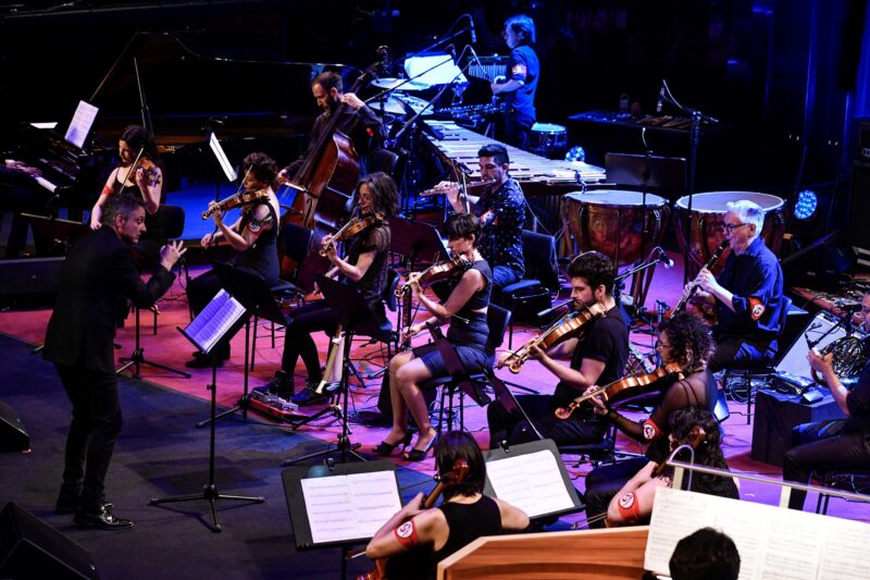 El concierto arrancó con un recorrido camarístico por la obra de Charly a cargo de una orquesta de cámara de tres violines, tres violas, dos cellos, contrabajo, corno, oboe, flauta, piano y percusión.