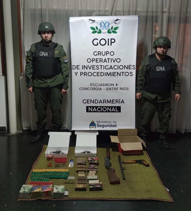 Gendarmería Nacional allanó tres domicilios y secuestró un arsenal. Fue en el marco de una causa por venta de drogas. Hay una persona detenida.