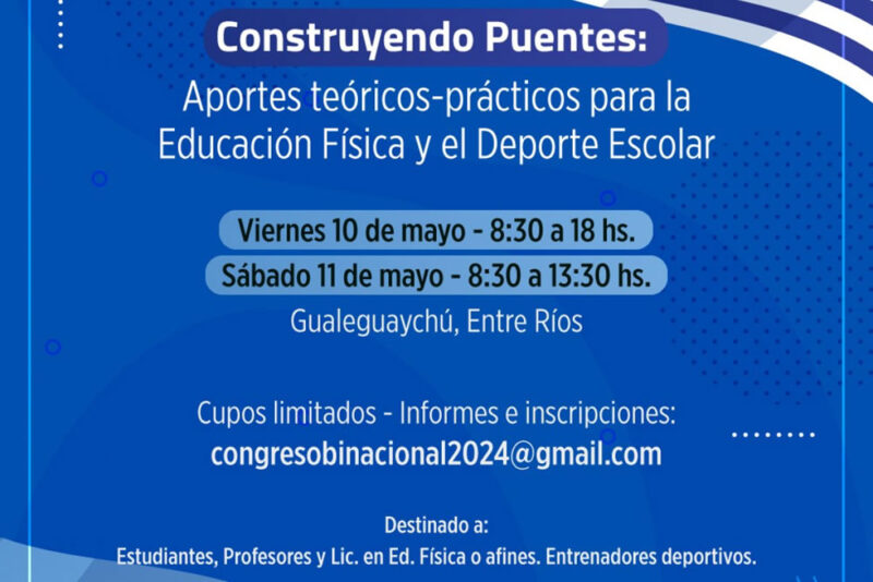 El próximo 10 y 11 de mayo, se realizará la segunda edición del Congreso Binacional, bajo la consigna: “Construyendo Puentes: Aportes teórico-prácticos para la Educación Física y el Deporte Escolar».