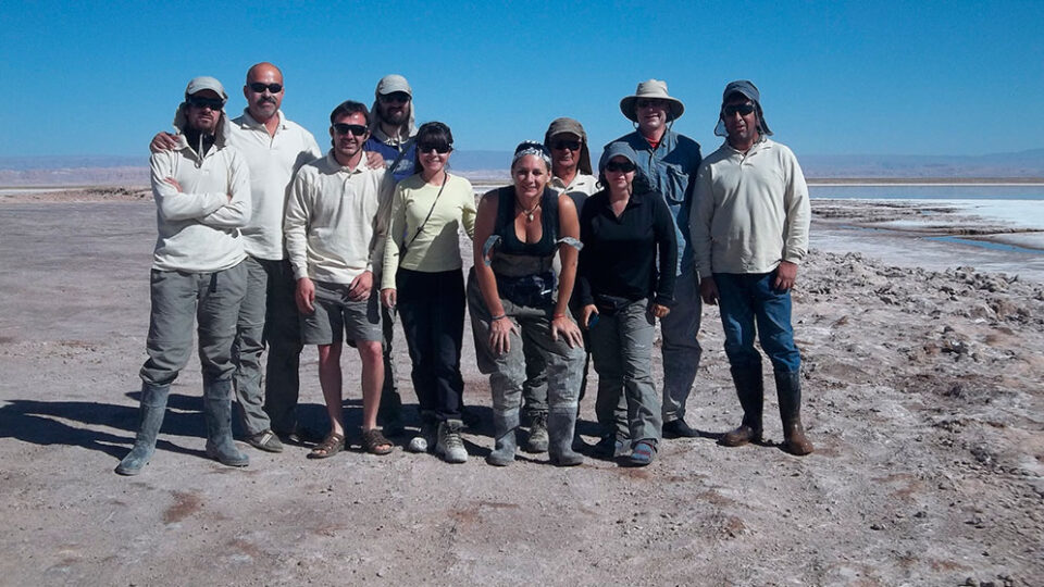Para respaldar aún más la teoría, restaba que los investigadores contaran con un equivalente moderno que posibilitara estudiar la biogeoquímica y el ciclo de elementos. Una expedición topográfica realizada por Farías junto a colaboradores chilenos en el Desierto de Atacama, sirvió para ratificar esta hipótesis. En ese inhóspito sitio observaron que el fondo de una laguna denominada La Brava, estaba teñido de un color púrpura brillante como resultado de la presencia de tapetes microbianos, activos, que forman estromatolitos y que prosperan pese a la ausencia total de oxígeno. “Estos son ecosistemas microbianos, extremófilos, que se adaptan a condiciones inhóspitas comparables a las del planeta hace 3.400 millones de años”, considera Farías, referente mundial en ecología microbiana de salares en los Andes.