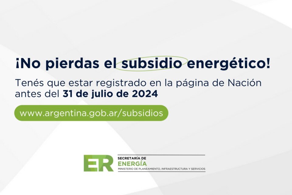 En el marco del pase a un esquema de subsidio focalizado, el gobierno nacional quitará el subsidio general al consumo residencial de luz y gas. Por lo cual, quienes deseen acceder al beneficio deberán inscribirse en el RASE. Para hacerlo deben ingresar a argentina.gob.ar/subsidios. Hay tiempo hasta el 31 de julio.
