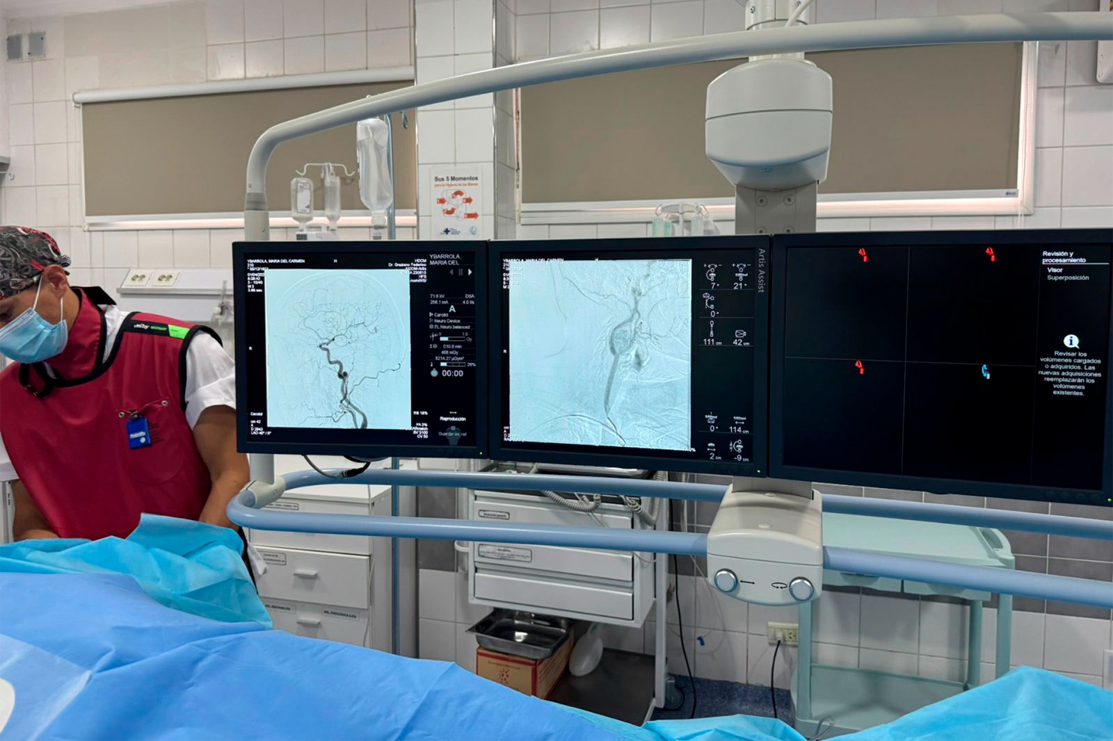 La paciente, oriunda de San Salvador, había sido derivada por una tumoración lateral en el cuello. Luego de una evaluación integral, se le realizó una angiotomografía que permitió orientar el diagnóstico inicial. A continuación, un cateterismo selectivo de la arteria carótida realizado en el Servicio de Hemodinamia permitió caracterizar con precisión la lesión, lo que posibilitó planificar con rigor la intervención quirúrgica.