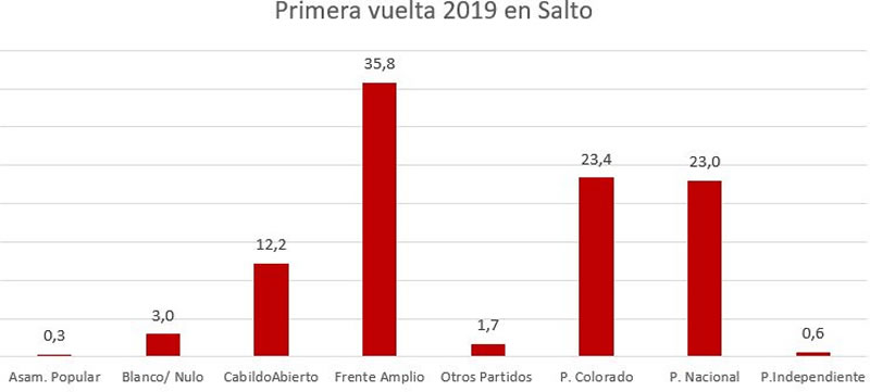Comencemos por recordar cómo fue el resultado electoral en Salto en la primera vuelta del año 2019: