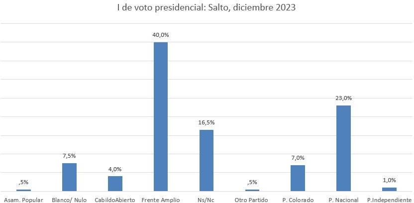 Vemos ahora cómo es la intención de voto actual en Salto hacia esa primera vuela: