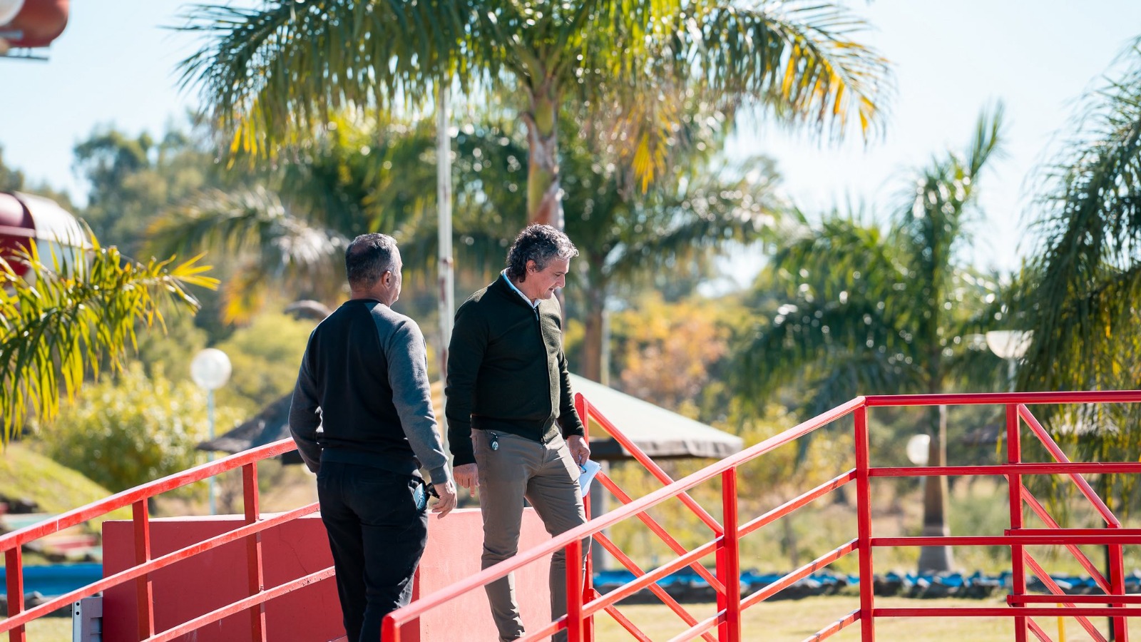 Durante la recorrida, el Intendente Bravo detalló las tareas concretadas: “Estamos de recorrida acá en el Parque Termal y el Parque Acuático, inspeccionando todos los trabajos que se vienen realizando. Estamos haciendo una gran inversión en el pintado y reparación de las piletas, así como en las refacciones de las mismas. También estamos realizando el recambio de luminarias, acondicionando el cierre perimetral de todo el predio, incluyendo la reparación y pintura de los portones, y llevando a cabo refacciones y pintura en todos los juegos”.